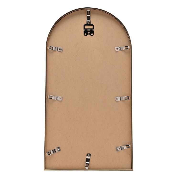 • Arched gold-plated photo frame with contemporary styling and sleek metallic finish for sophisticated home décor