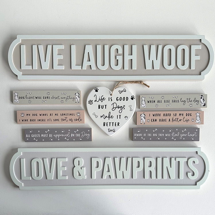 • Bring some cheerful personality to a wall with this 'Love & Pawprints' giant sentiment plaque.