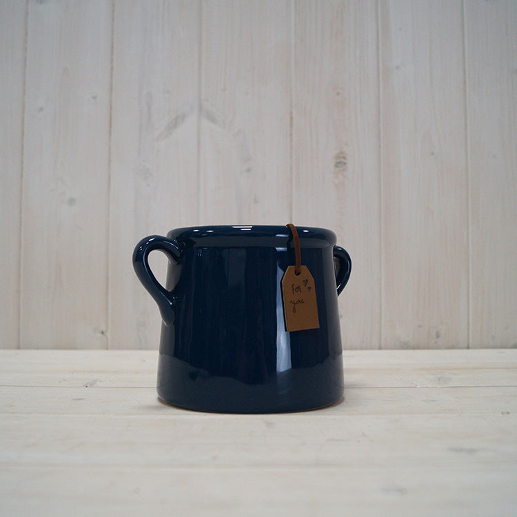 - These beautiful dark blue milk churn style pots, will make the perfect addition to your home, or the perfect gift for a loved one.