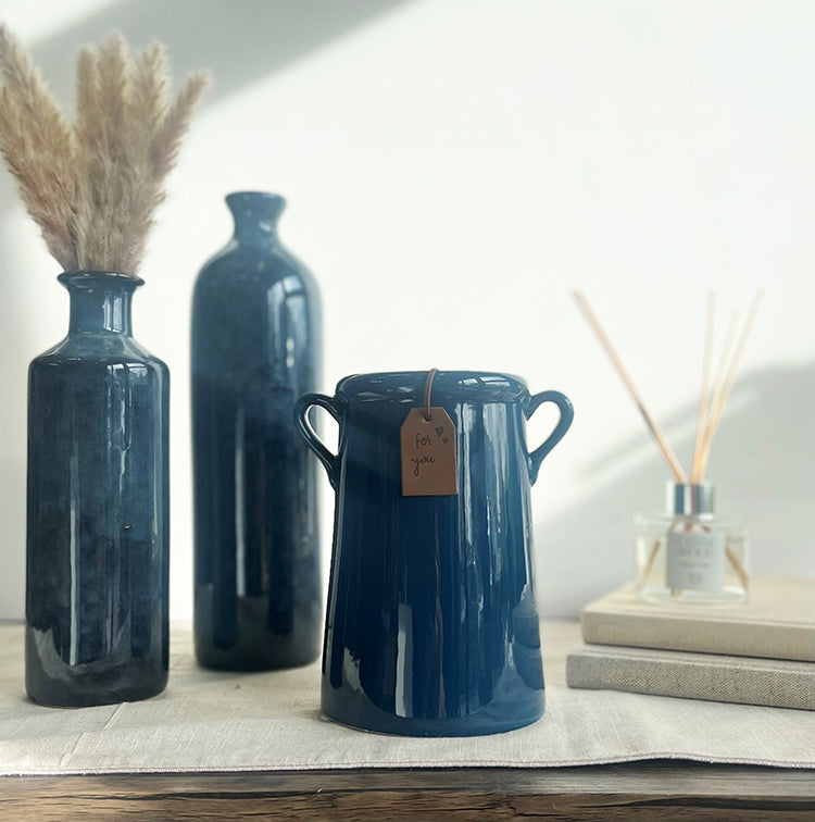 Dark Blue Ceramic Milk Churn Vases | 3 Sizes Available