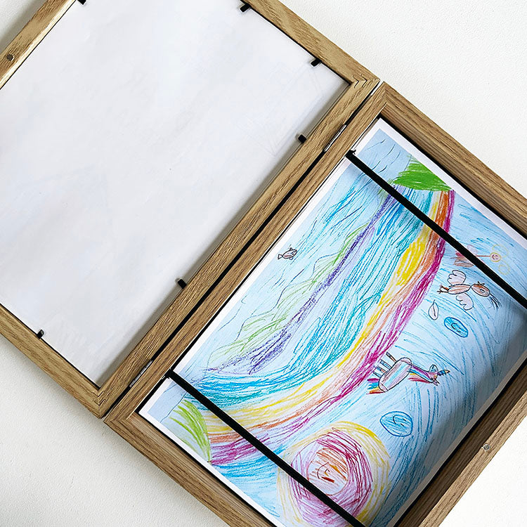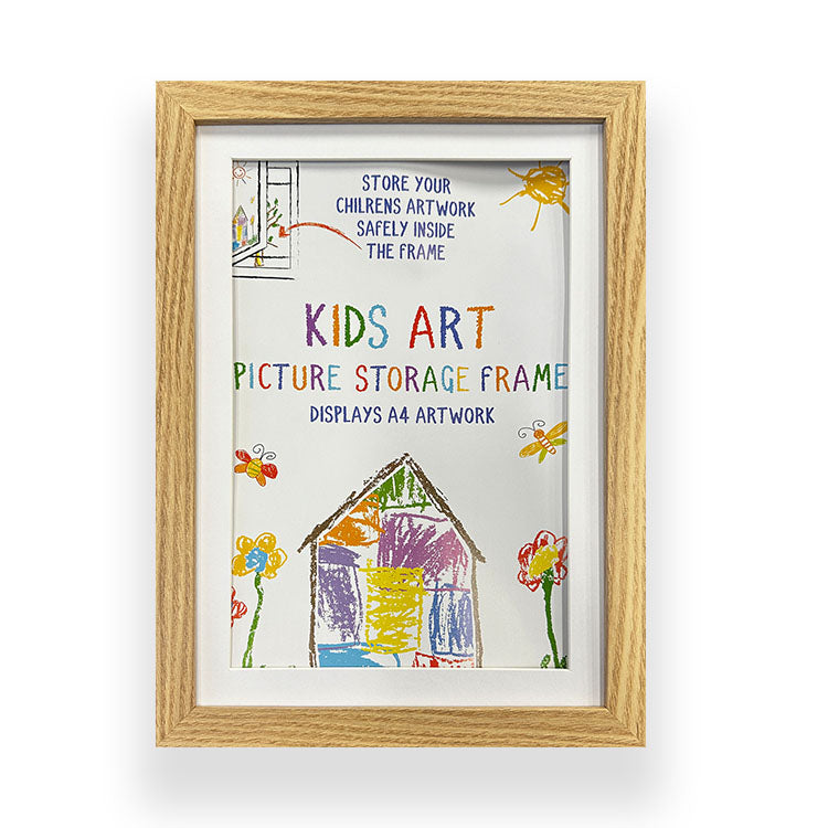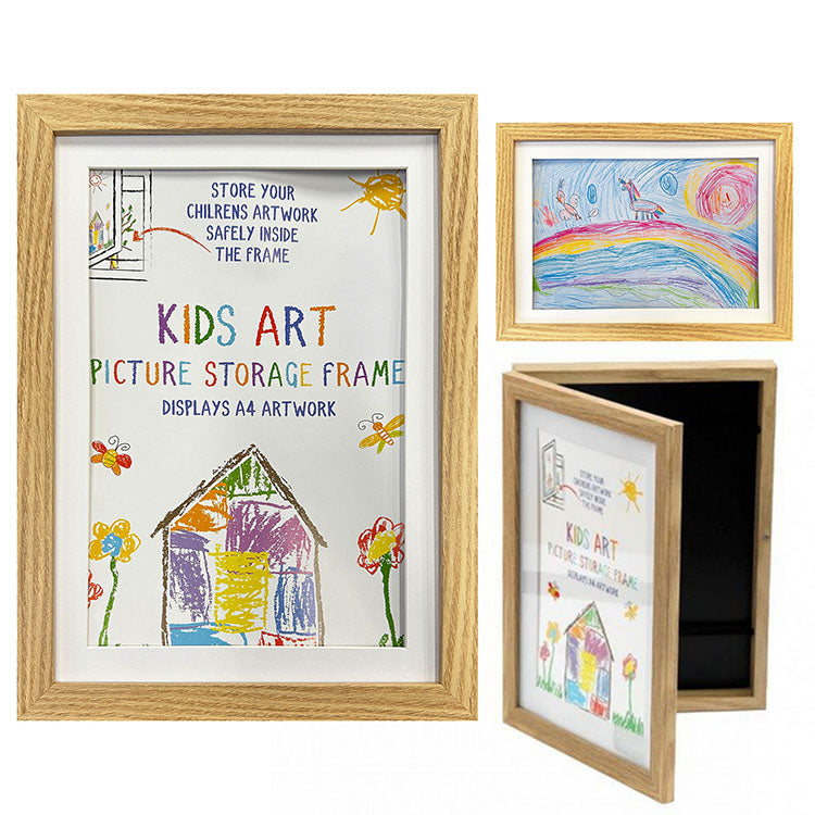 • The children's artwork display frame is the perfect size for A4 or smaller artwork and can accommodate up to 100 pieces of A4 paper.