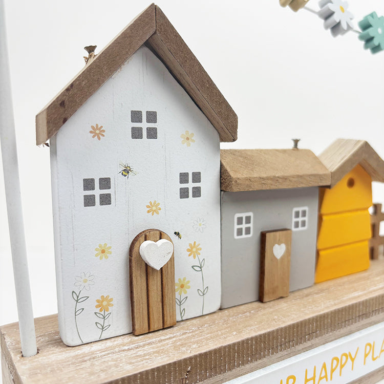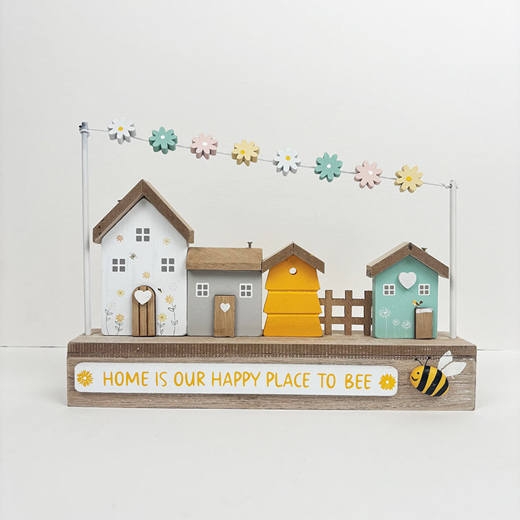 - Adorned with floral bunting, painted flowers, bees and birds and finished with a home sentiment.