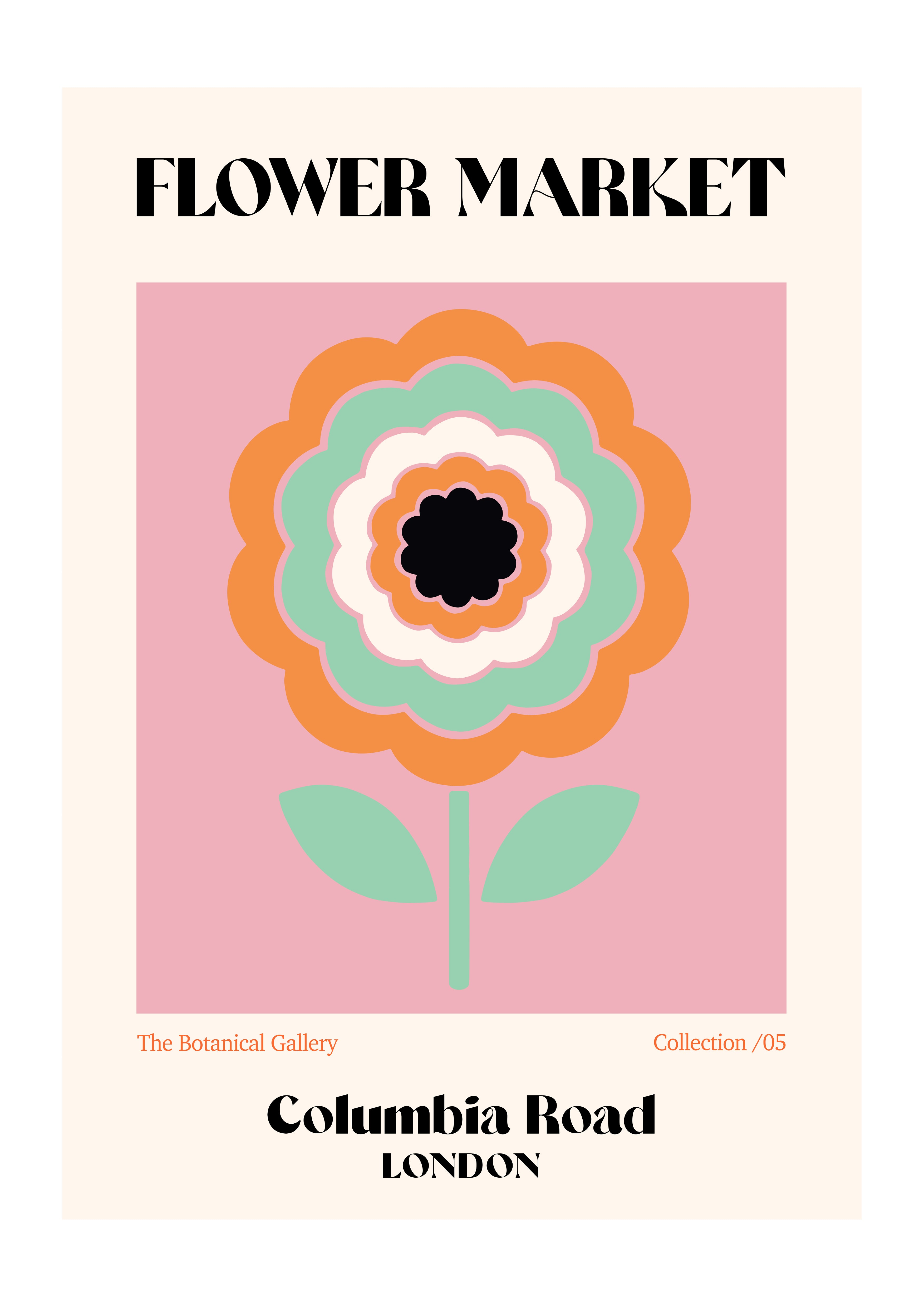 Celebrate London's famed Columbia Road Flower Market with this retro pink graphic print.