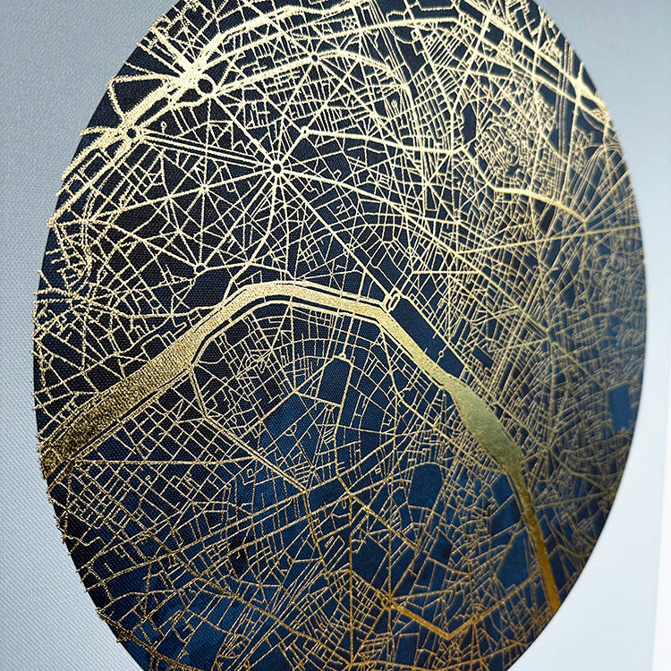 The canvas is complete with Paris Text and a map of central Paris in gold foil.