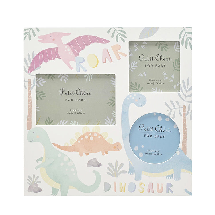 - Dinosaurs have unisex appeal and are loved enormously by little ones, therefore, this attractively designed frame with multiple apertures will make the perfect addition to any nursery space.