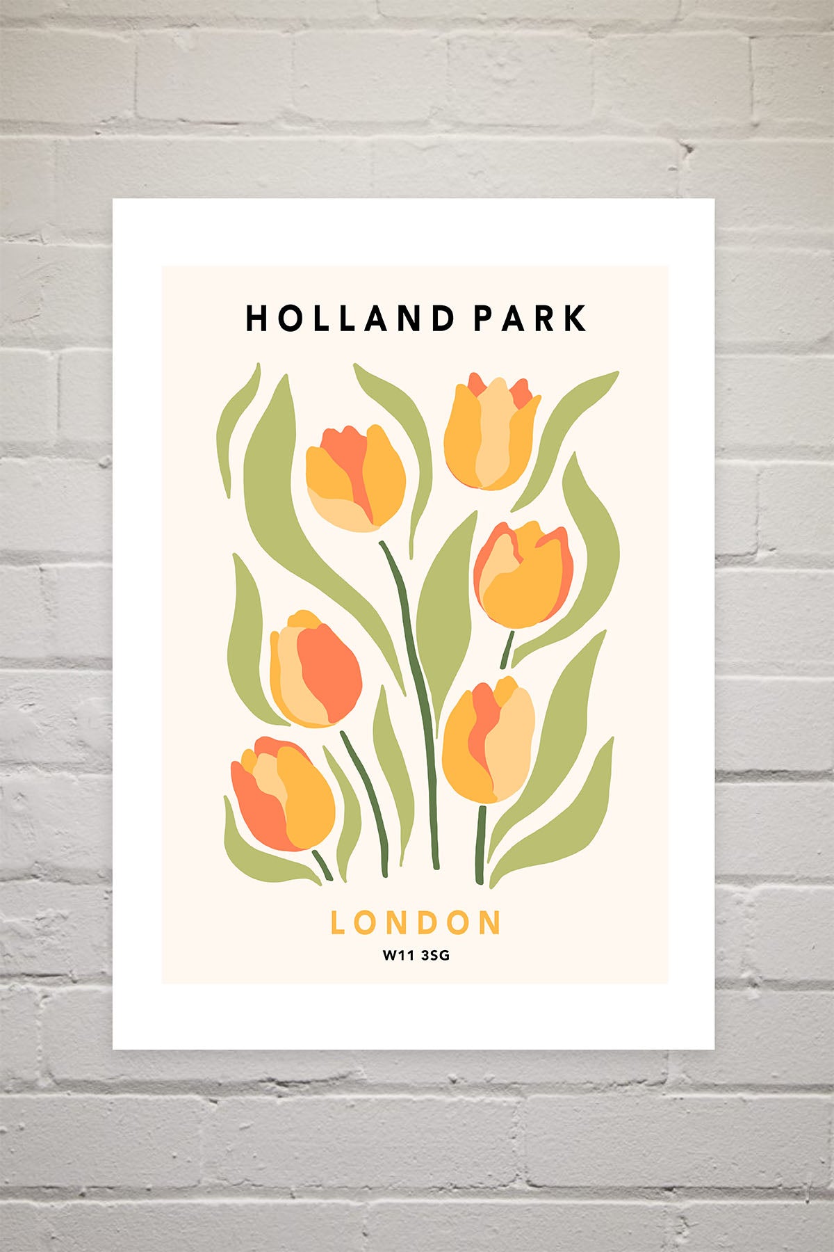 Celebrate London's Holland Park with this beautifully illustrative tulip print.