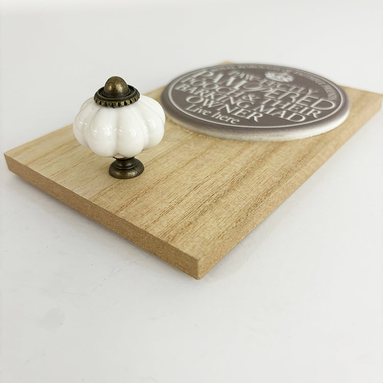 - The plaque is complete with a royal inspired sign with the quote ' Paw-fectly Pampered Pooch and their barking mad owner live here, and finished with hook for hanging their lead.