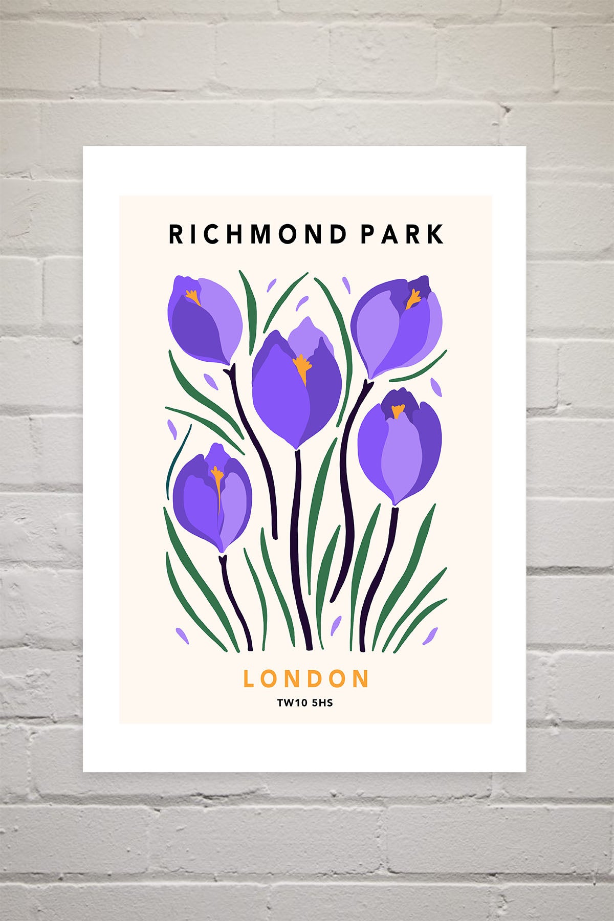 Celebrate London's Richmond Park with this beautifully illustrated purple flower print.